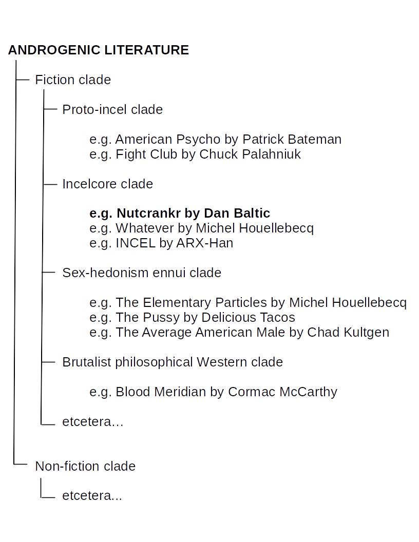 Enter ANDROGENIC LITERATURE and its novel literary sub-clade: fictionalized incelcore.